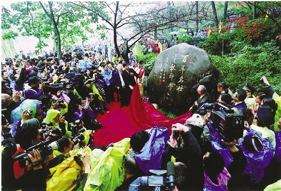 2003年,西泠印社百年社庆纪念碑揭碑仪式现场