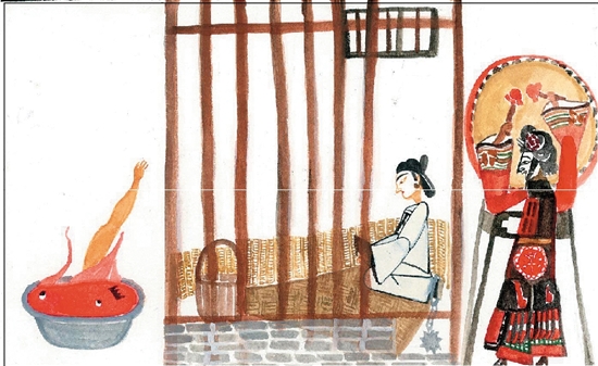 6.乃请谢廷赴宴,烹脚以享之,谢廷遵金奶奶锦囊之嘱,坚不肯食。陆宾便自食之,顿觉浑身奇痒难忍,忙命烧水入浴。谢廷因而下狱。文之妻吴氏,颇有侠肝义胆,闻知此事,亲身探监,与谢廷认为嫡亲兄妹,携其家人往淮安府申兔告状。