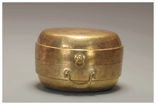 五代十国吴越国牡丹双凤对飞纹鎏金银盒