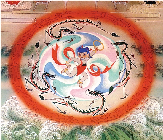 张仃 哪吒闹海 首都机场壁画局部 1979年