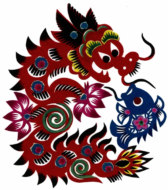 申沛农 龙腾鱼跃 剪纸 宽15.5cm 高17.5cm 1999年