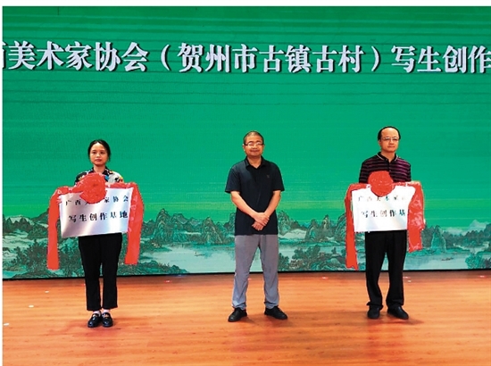 广西美术家协会副主席孟远烘为写生创作基地授牌