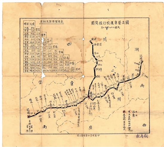 1938年,国立艺专从湘西沅陵至昆明的迁校行程简图(卢是旧藏)