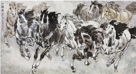 张宏宾 八骏图 90×180cm