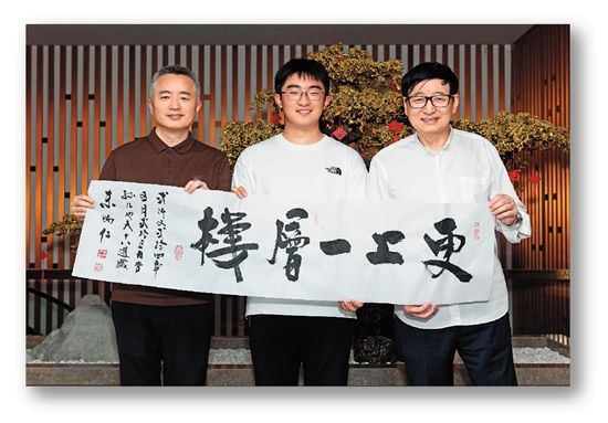 朱炳仁(右)、朱军岷(左)、朱也天祖孙三代