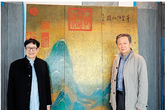 在美国911后重建的世贸中心一号楼,永久陈列了朱炳仁的几十件作品,如以唐代韩滉的《五牛图》、宋代王希孟的《千里江山图》、元代黄公望的《富春山居图》制作而成的铜雕艺术壁画等。