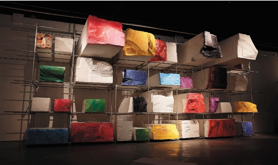 7月26日,“墨·锲:杨奇瑞水墨-装置作品展”于宁波美术馆开幕,图为展出作品之一。