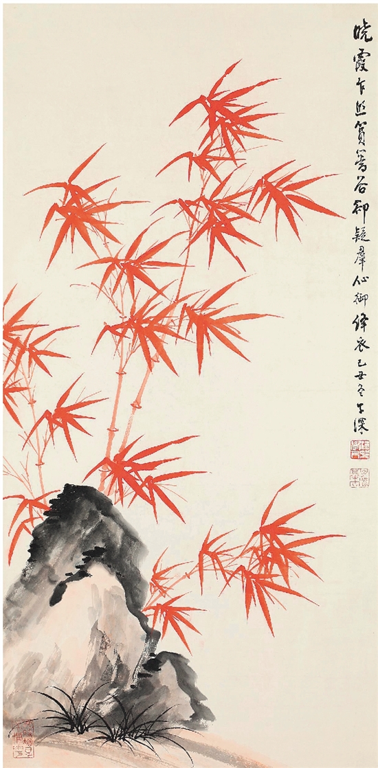 吴子深 朱竹图 68.5×34cm 中国画 1949年