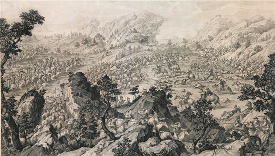 乾隆平定准部回部战图(阿尔楚尔之战) 91×52cm 18世纪 蚀刻雕刻铜版画