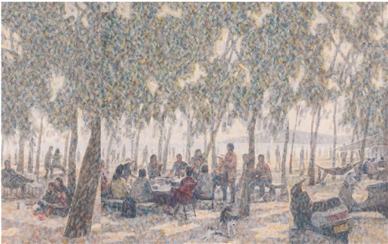 刘育菁(中国台湾) 珍珠湾的星期六下午 110×175cm 水彩、粉画 2023年