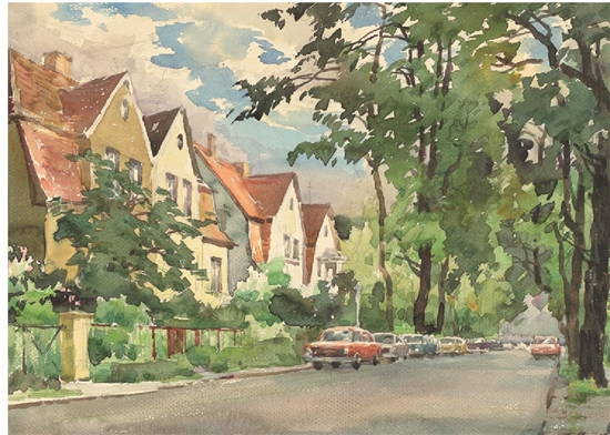 柏林某住宅区一角 37×51cm 水彩 1993年