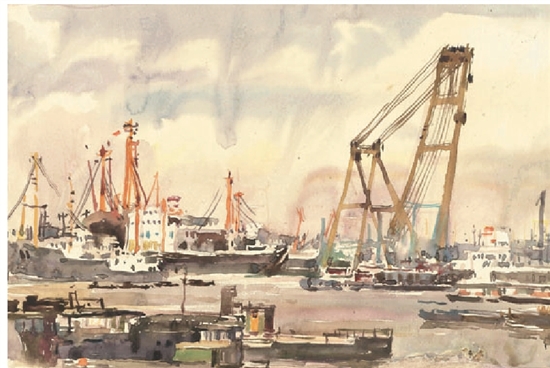 黄浦江上 34×50cm 水彩 1983年
