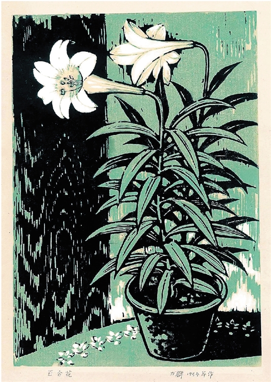 力群 百合花 版画 1954年