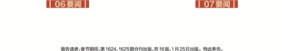 敬告读者:春节期间,第1624、1625期合刊出版,共16版,1月25日出版。特此奉告。