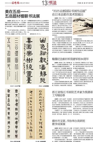 本报讯 通讯员 朱广华 日前,由中国美术馆主办的“美在五岳——五岳题材楹联书法展”与观众见面。展览共展出52位书画名家的100幅五岳题材楹联书法作品。