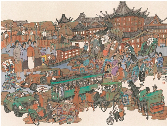 周矩敏 海上尘烟—豫园 123×163cm 中国画