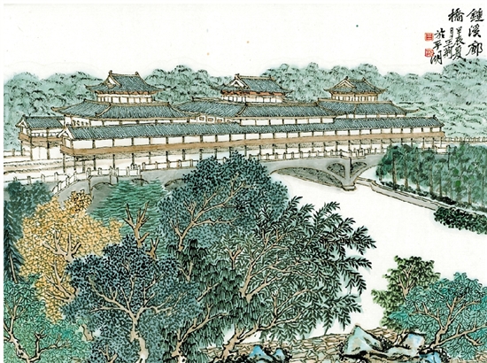 | 王荆 钟溪廊桥 40×40cm 国画 2024 |