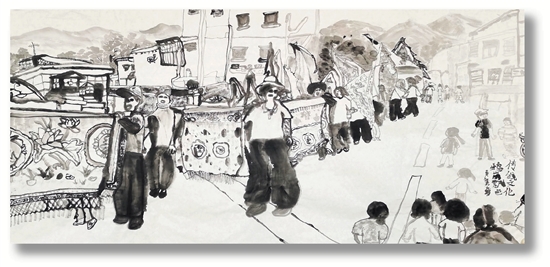 黄钰玲(9岁) 鸦岗飘色 67×138cm 水墨