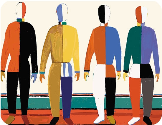 ❹过程4是对于过程3的继续推进。在这一步中,完善各个人物之间的色彩组合边缘与咬合关系,同时注意把握四个人物与背景环境的关系。