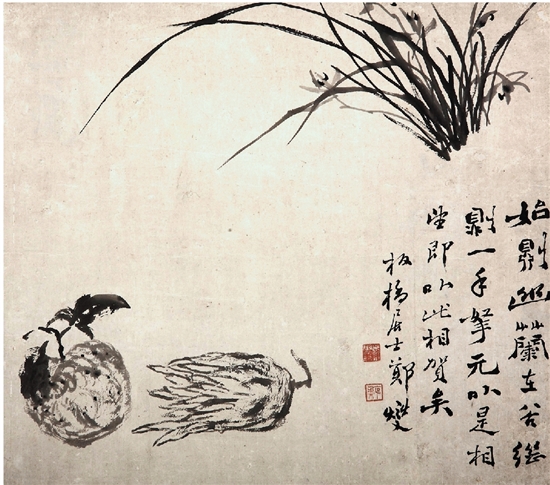 清代 郑燮 幽兰佛手图轴 52.4×60cm 墨笔纸本