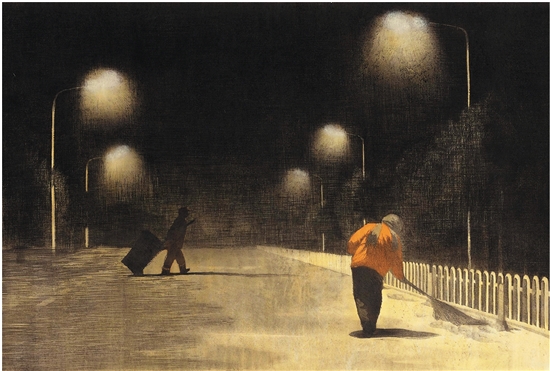 庾武锋 夜色灼灼 90×60cm 水印木刻