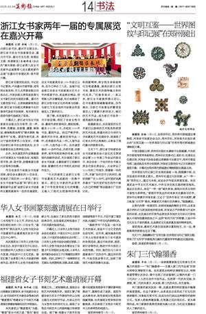 本报讯 陈尹荔 郑玮婕 日前,由福建省文联指导,省书法家协会主办,省书协刻字艺术委员会等承办的“锲道萱风”福建省女子书刻艺术邀请展在福建省海峡民间艺术馆展出。