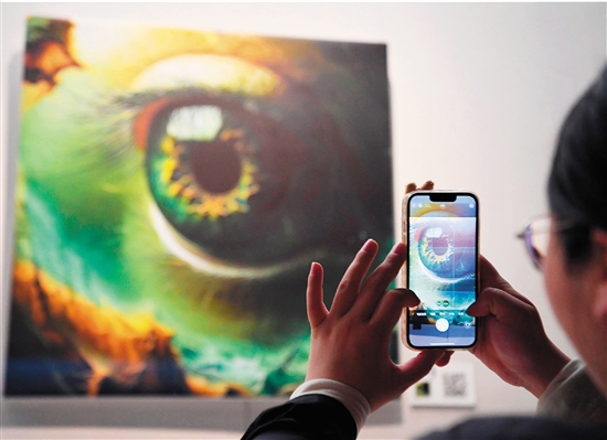 “AI绘画的共生探索”作品展在郑州博物馆开幕。图为展览现场。(新华社记者 郝源/摄)