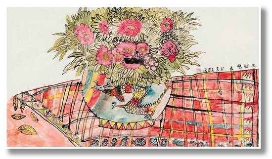 吴旻哲 玉颜艳春彩 68×45cm 水墨