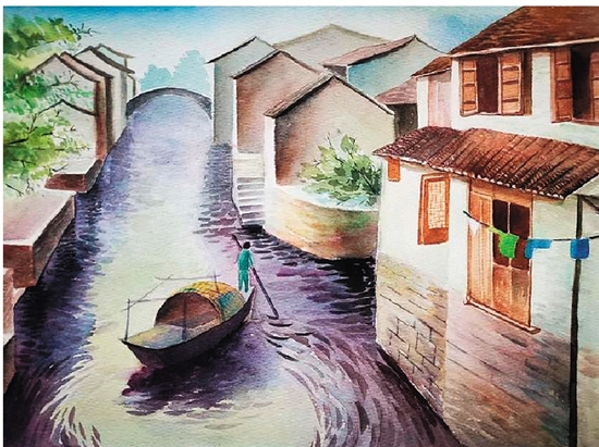 方余 塘河水巷 水彩(教师作品)