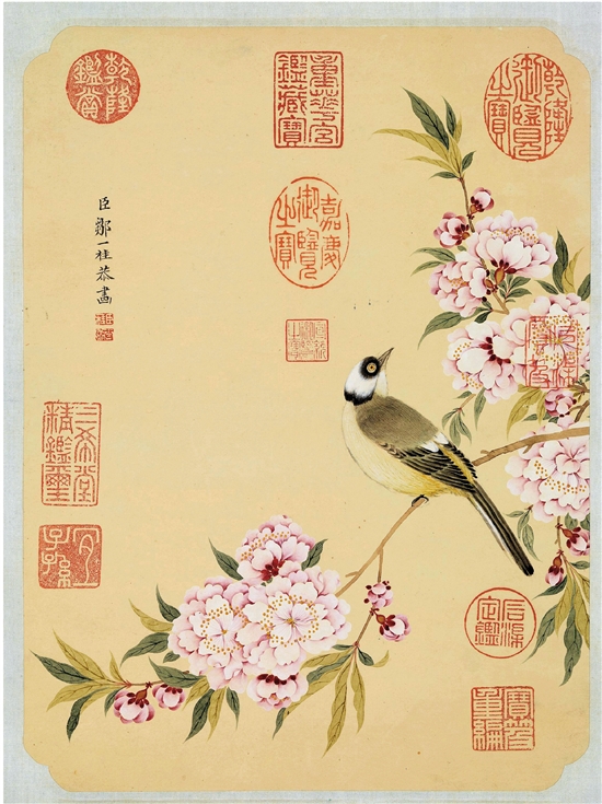 清 邹一桂 碧桃春鸟图 29.2×21.6cm 纸本 立轴 设色 台北故宫博物院
