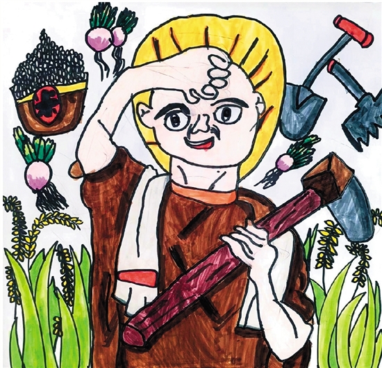 ▲白羽络(浙江省绍兴市柯桥区安昌中心小学) 致敬劳动者之农民伯伯