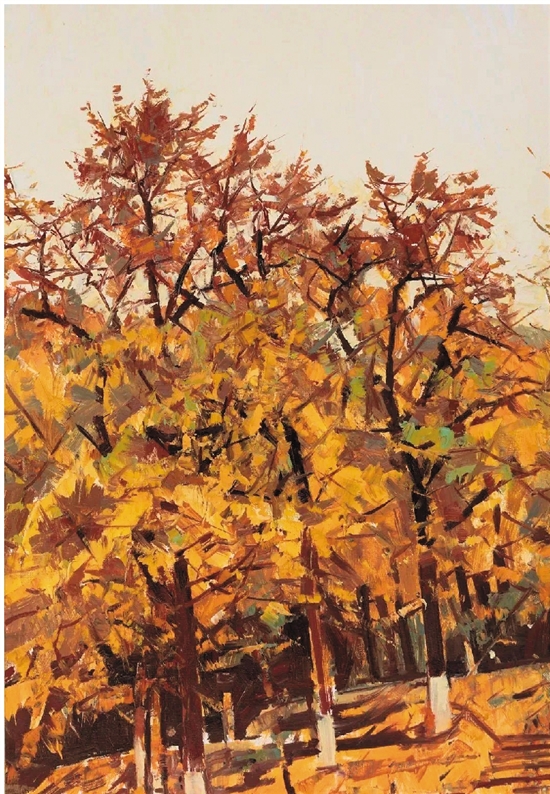 许江 十里银杏之九 纸面油画 73×50cm 2024年