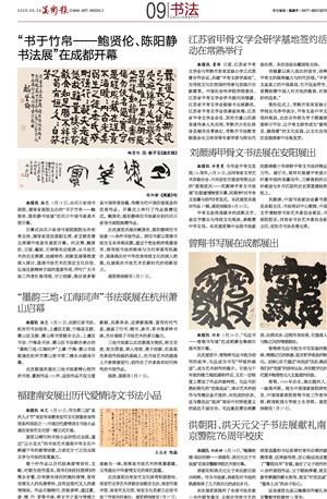 本报讯 报艺 5月18日,由四川省诗书画院、湖南省画院主办的“书于竹帛——鲍贤伦、陈阳静书法展”在四川中国书画美术馆开幕。
