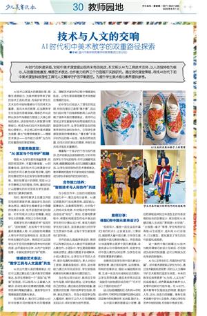 AI技术以其强大的数据处理、图像生成等能力,为美术教学带来了新的技术工具和资源,而保护好学生在艺术创作中独特情感与个性同样尤为重要。面向未来的教育,应当聚焦学生在创造性思维突破、情感艺术化诠释以及协作沟通能力塑造三大核心领域的成长,这些独特的人类智慧与情感能力,将成为他们应对未知挑战的核心竞争力。本文将以初中美术课堂为场景,提出“创意思维激发——情感艺术表达——合作能力培养”为方向的双重路径的课堂策略。