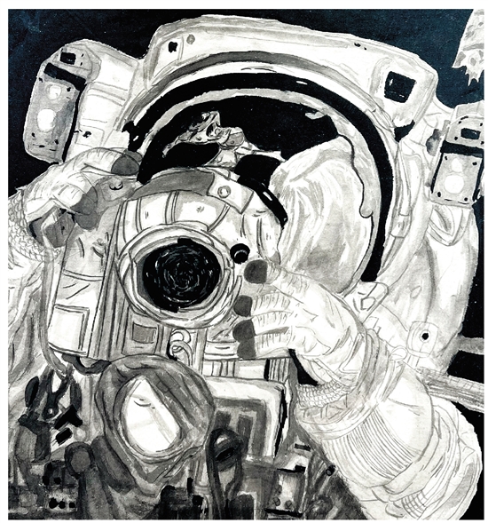 蔡静琪 太空自拍 水墨画
