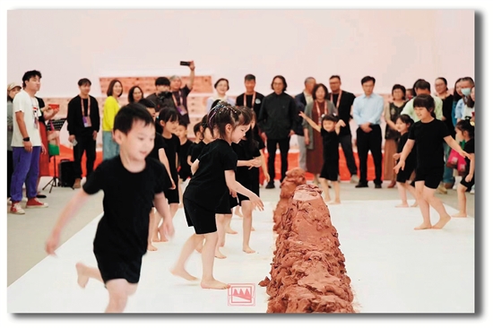 | ◀开幕现场孩子们随着鼓声在泥中绽放自由的肢体 鼓声起,合着生命节律,在泥的世界中绽放自由的肢体。轻重、缓急、疏密、高低……每一次跳动都被泥捕捉,每一次呼吸都与泥呼应,每一次探寻都由泥铭记,以身为笔、以泥作纸。5月24日,“中国面孔·世界容颜”2025万名儿童美术(泥塑)双年展在南京四方艺术湖区拉开帷幕。428698件童趣盎然的泥塑作品如繁星般点亮展厅,构筑出一个天马行空的艺术宇宙。这里,孩子们用最原始的泥土语言,讲述着对世界的认知与想象。 |
