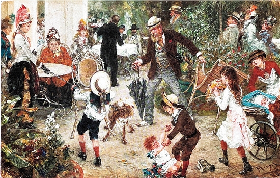 阿道夫·冯·门采尔 基辛根的咖啡时间 11.4×18.4cm 纸本水粉 1886年 私人收藏