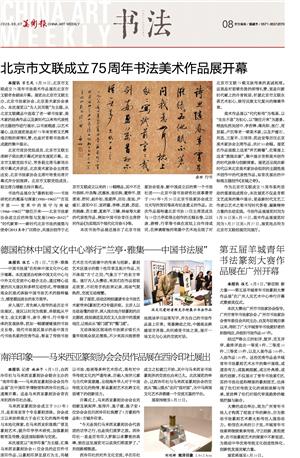 本报讯 京艺苑 5月28日,北京市文联成立75周年书法美术作品展在北京市文联老舍剧场开幕。展览由北京市文联主办,北京书法家协会、北京美术家协会承办。本次展览以“为人民而歌”为主题,从北京文联藏品中选取了老一辈书法家、美术家的经典作品以及新时代以来有代表性的主题创作进行展示,以书画载道、以艺术凝心,这次展览既是对75年来首都文艺辉煌历程的深情礼赞,也是对首都书法美术成就的集中展示。