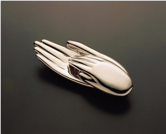 1997年设计的香港回归纪念银器《手牵手》