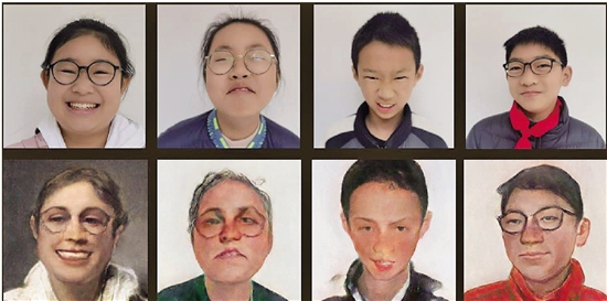 学生们使用AI画笔工具,生成的个性化肖像作品