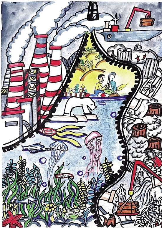 陈演宸(10岁) 工业阴影下的生态雨落