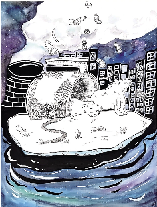 黄茹萱(8岁) 污染笼罩的极地冰原