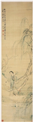 清 费丹旭(费晓楼) 柳荫扑蝶图