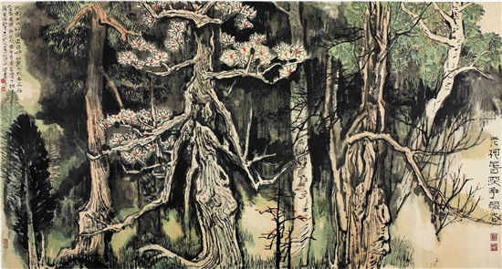 何海霞 老柯春深争缀花 95×177cm 镜心 纸本设色 何海霞美术馆藏