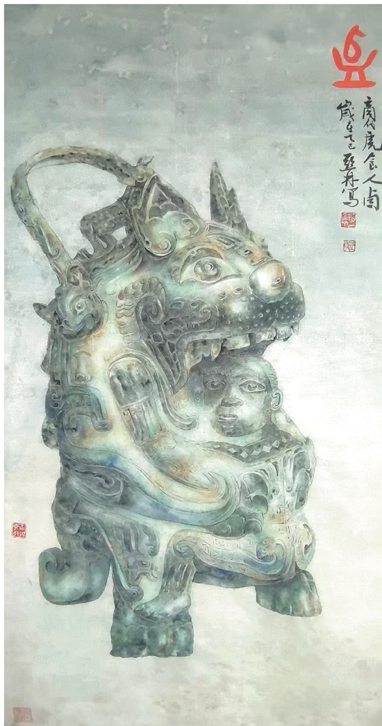 嵇亚林 虎人卣 125×68cm 纸本 2025年