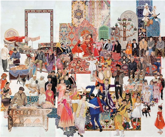 李丹 刘梓涵 刘睿 刘丽娟 美丽新疆 300×360cm 壁画 2024年(作品选自第十四届全国美术作品展览,获第四届“中国美术奖”金奖)