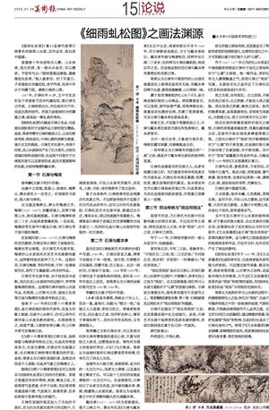 《细雨虬松图》(图1)是清代画僧石涛著名的细笔山水画,其作品名,取自画中题跋: