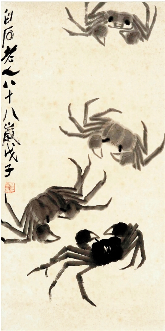 齐白石 螃蟹 68×34cm 水墨纸本