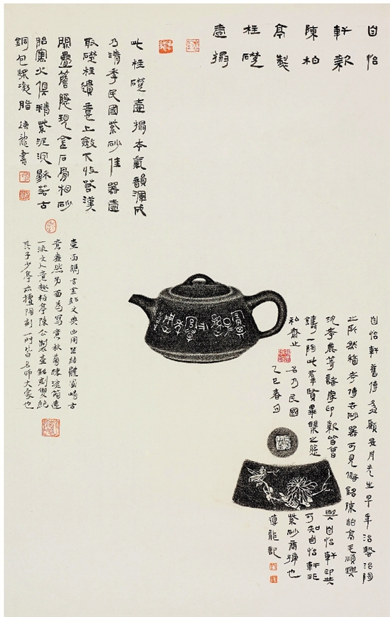 刘德龙 自怡轩款陈柏亭制柱础壶拓题跋 70×45cm