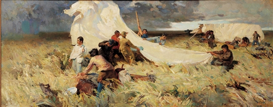 詹建俊 起家 140×348cm 布面油彩 1957年 中央美术学院美术馆藏